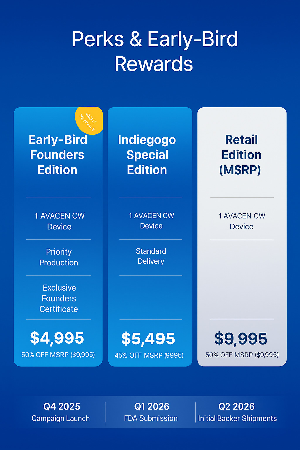 - “Built on $30M+ in AVACEN device sales and 35M+ treatments.”